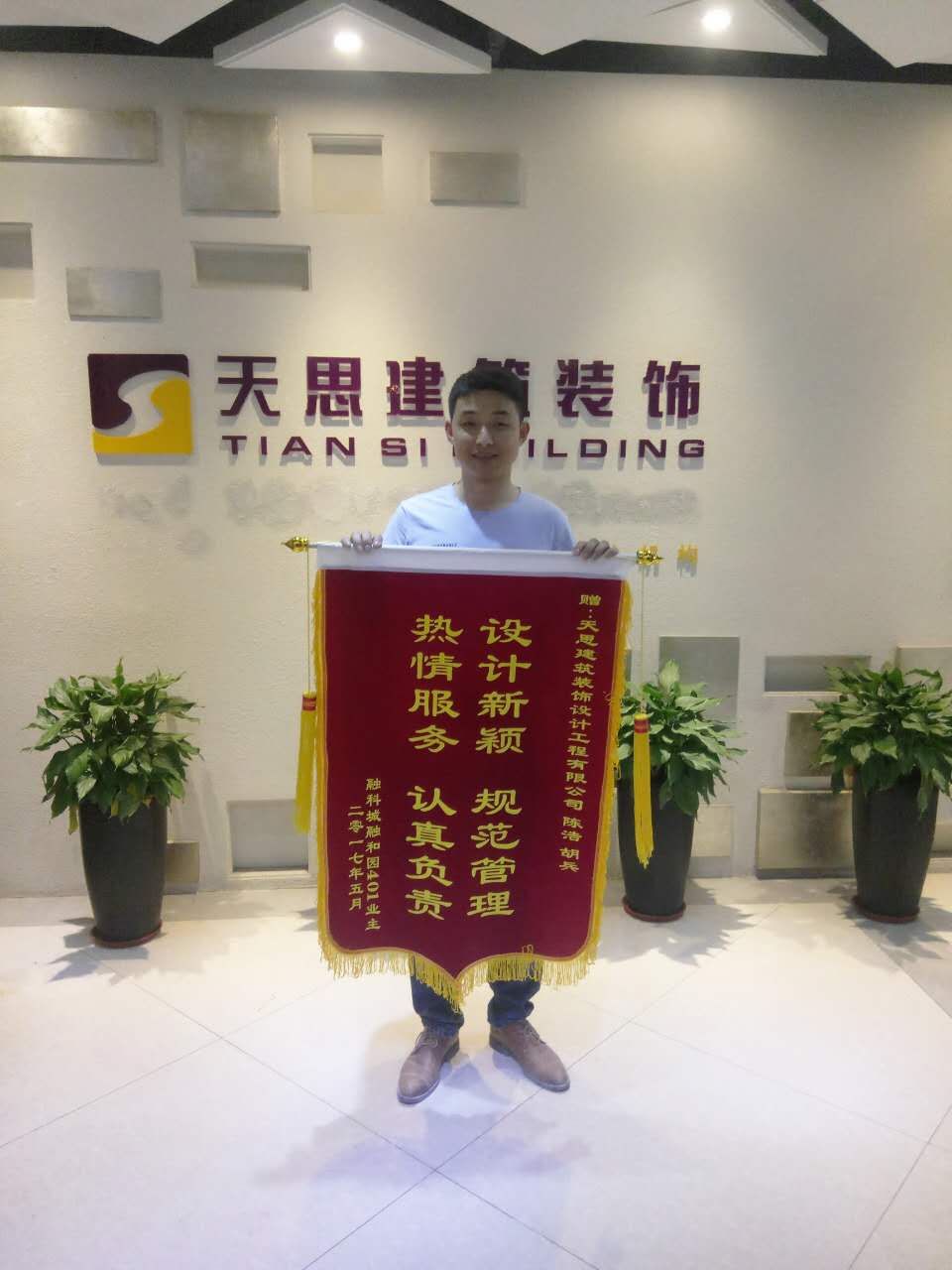 這一次的裝修讓業主倍感輕松,我們天思的工作人員也非常開心。業主送的錦旗不僅僅是一種榮譽,更是業主朋友對天思工作態度的肯定和認可,是讓我們天思向更高的目標邁進的強大動力。期待以后的我們能用更專業的質素和更好服務態度為更多的業主實現自己的家具夢想,真真正正的為業主省時、省心、省力、省錢!