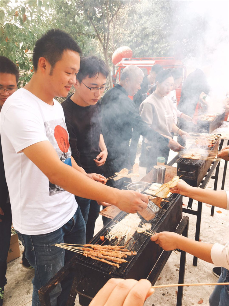 10月21日,大家準時到達目的地。領導與員工穿插入座, 拿材料、搬爐子、生火……看著熊熊的炭火燃燒著,整個現場頓時沸騰起來?;顒悠陂g,大家興致勃勃地互相交流,增進了相互之間的了解與認識,促進了部門與部門間的合作精神,拉近彼此的距離。