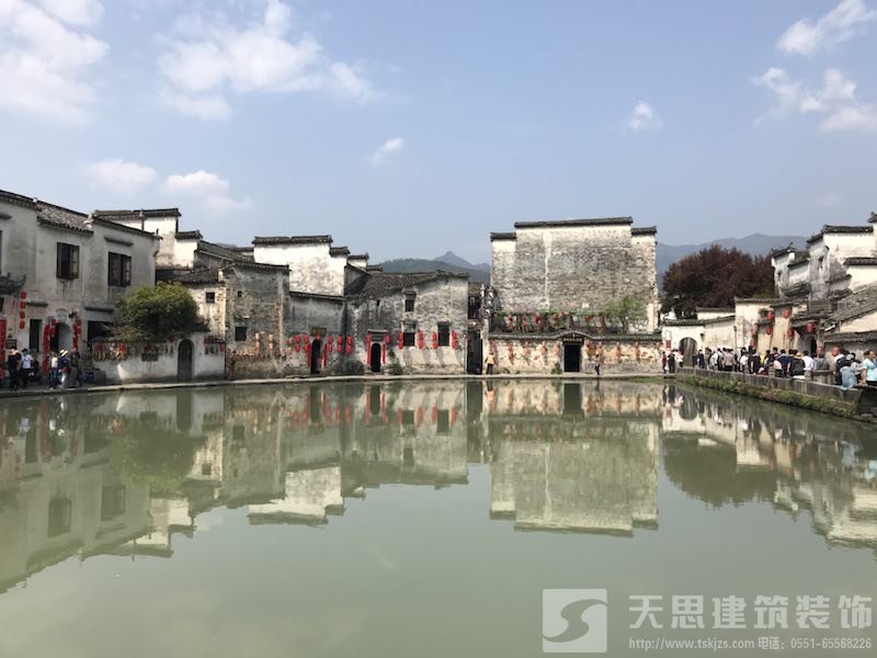 在皖南眾多風格獨特的徽派民居村落中,宏村是最具代表性的。從整個外觀上說,宏村是古黟桃花源里一座奇特的牛形古村落,既有山林野趣,又有水鄉風貌,素有“中國畫里的鄉村”之美譽。村中各戶皆有水道相連,汩汩清泉從各戶潺潺流過,層樓疊院與湖光山色交輝相映,處處是景,步步入畫。閑庭興步其間,悠然之情濃烈得讓人心醉。