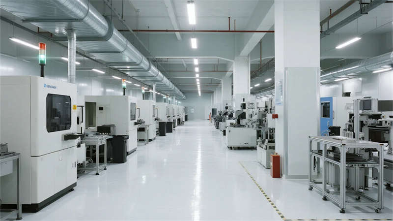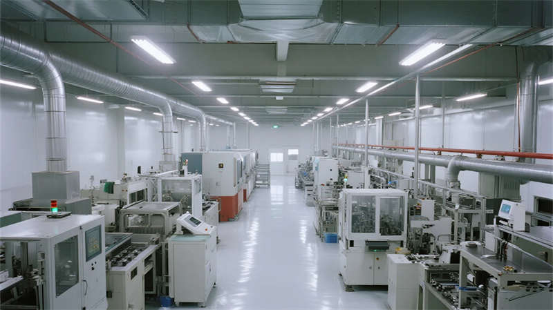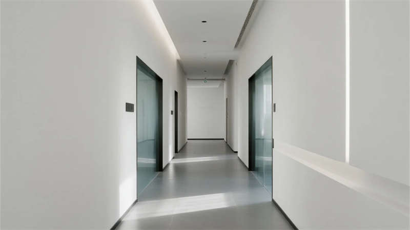 內(nèi)部空間延續(xù)"少即是多"哲學:生產(chǎn)車間以銀白為主調(diào),設備管線規(guī)整排布于頂棚,環(huán)氧地坪反射線性燈光,營造科技感十足的無塵環(huán)境;辦公區(qū)突破傳統(tǒng)隔斷,玻璃幕墻引入外部景觀,綠植墻自然劃分區(qū)域,形成通透開放的協(xié)作場域。