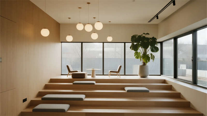 人性化細節(jié)貫穿始終——階梯休息區(qū)木色臺階軟化空間硬度,球形燈組如懸浮星辰;走廊通過精準的光帶設計,將功能通道轉化為光影藝術長廊;會議室電子玻璃白板與磁吸燈光系統(tǒng),則體現(xiàn)智能與極簡的融合。項目扎根蕪湖工業(yè)土壤,以克制的設計語言實現(xiàn)工業(yè)建筑的功能升維,讓理性空間煥發(fā)靜謐詩意,成為現(xiàn)代制造美學的實體宣言。