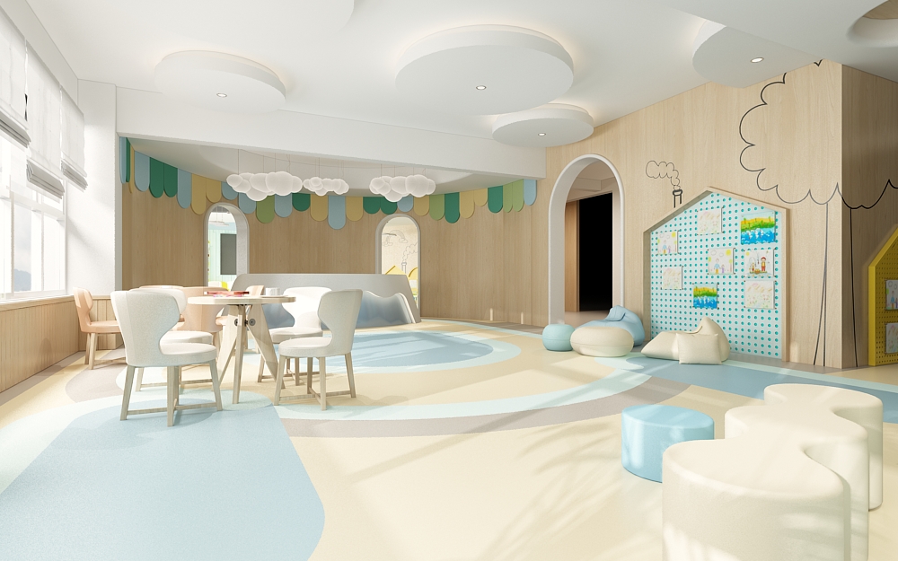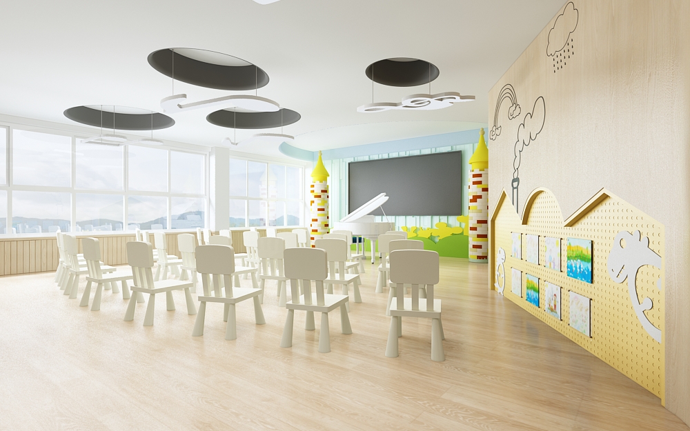 幼兒園的活動教室是孩子們進行各種室內活動的場所,是一個小型的多功能活動空間,我們在設計幼兒園活動教室的時候要秉持著讓孩子們更喜歡待在幼兒園這個目的。孩子們在活動室可以進行上課,桌面游戲,聽故事講故事,唱歌,跳舞,開展興趣小組活動,扮家家,吃午飯吃點心等等。