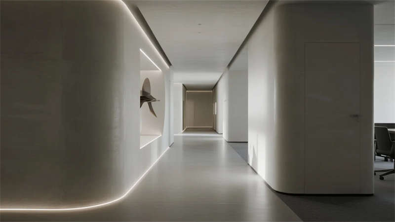 本設(shè)計(jì)以現(xiàn)代簡(jiǎn)約語(yǔ)言重構(gòu)辦公展示空間,摒棄冗余裝飾,用微水泥的質(zhì)樸肌理與金屬的精致光澤形成對(duì)話。線性光帶貫穿空間,勾勒出清晰的建筑輪廓,同時(shí)營(yíng)造輕盈的科技感。大量留白處理賦予空間呼吸感,使產(chǎn)品展示與人文辦公自然融合。玻璃隔斷的應(yīng)用模糊了功能區(qū)域的邊界,形成通透連續(xù)的視覺(jué)體驗(yàn)。精心調(diào)配的自然光照與人工照明系統(tǒng),在不同時(shí)段呈現(xiàn)細(xì)膩的光影層次。軟裝選用低飽和度色調(diào),搭配溫潤(rùn)木元素與綠植,平衡科技空間的冷靜感,最終打造出一個(gè)既體現(xiàn)專(zhuān)業(yè)氣質(zhì)又蘊(yùn)含人文溫度的現(xiàn)代辦公展廳。