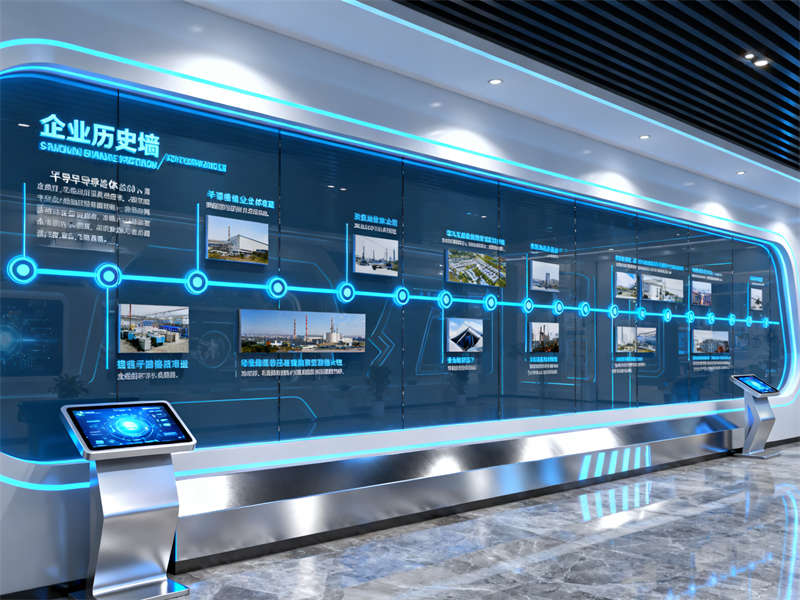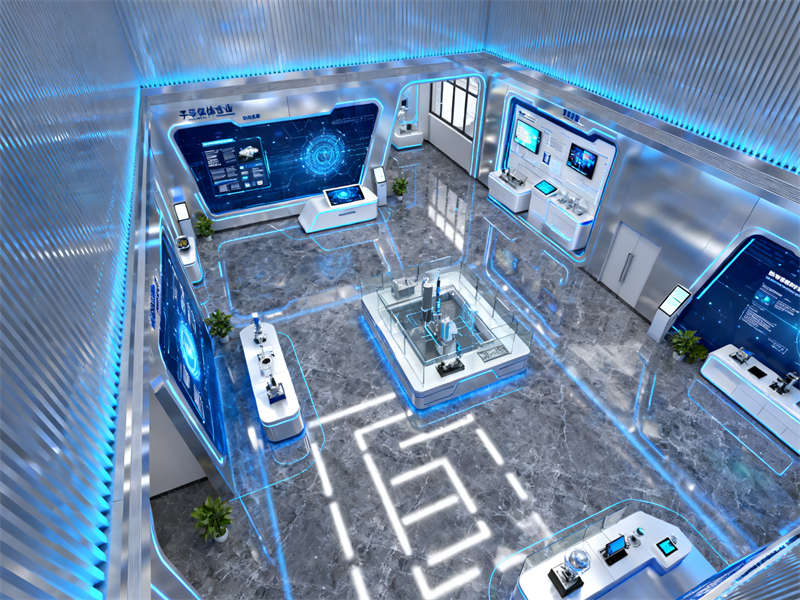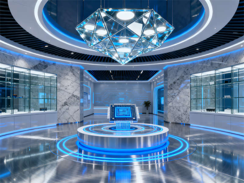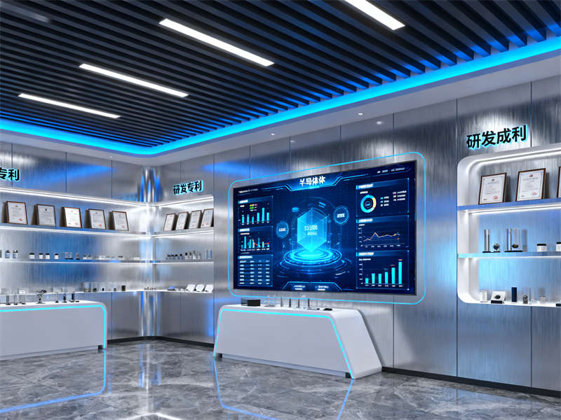 展廳入口處設(shè)置了沉浸式視覺裝置,通過光影效果模擬半導(dǎo)體芯片的微觀結(jié)構(gòu),讓參觀者剛進入就能直觀感受到行業(yè)特性。往里走,核心展示區(qū)采用開放式布局,搭配通透的玻璃展柜與懸浮式展臺,既方便參觀者近距離觀察展品,又能讓空間顯得開闊不壓抑。展示區(qū)旁設(shè)置了互動體驗區(qū),裝修上融入了柔和的木質(zhì)元素,平衡科技感帶來的冷峻,讓參觀者在互動過程中更顯舒適。?